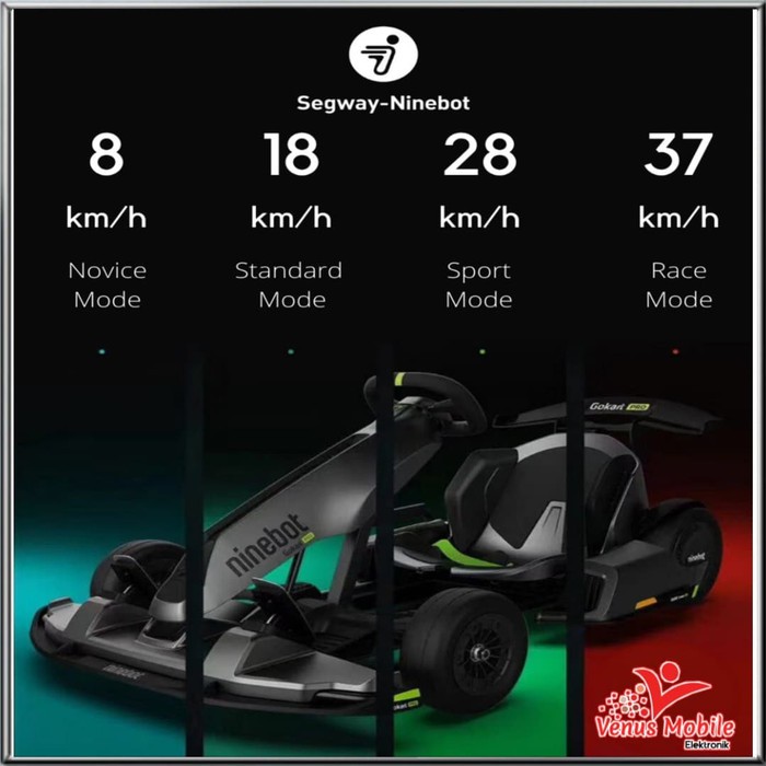 The Segway-Ninebot Gokart Pro is an electric kart which has a topspeed of 37 kmh. 8 kmh 18 kmh 24 kmh. It combines the S pro and the go-kart accessory kit.