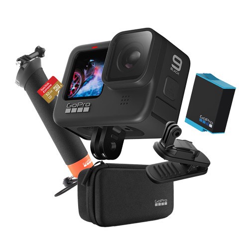 Stunning 5K video 20 megapixel photos. GoPro HERO9 Bundle Pack. The GoPro HERO 9 Black Bundle comes with everything you need to capture your adventures with outstanding video footage.